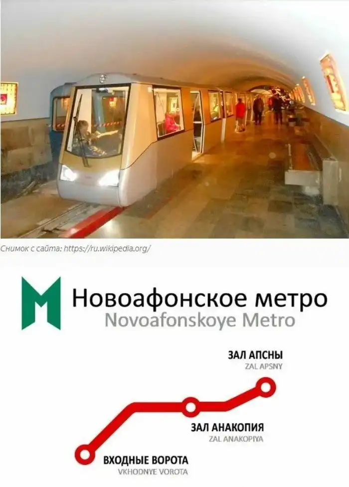 2 место. Абхазия. Новый Афон. Метро (пещерная железная дорога) имеет длину 1.3 км и 3 станции.