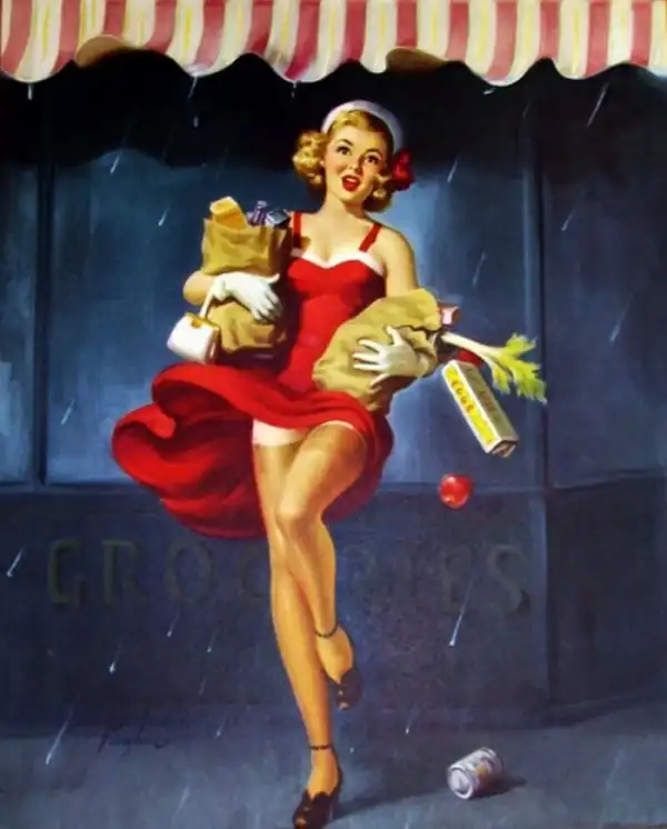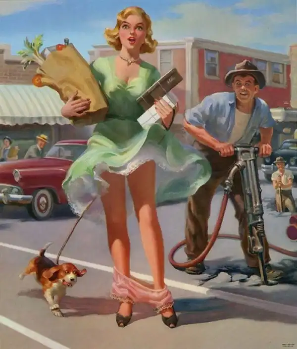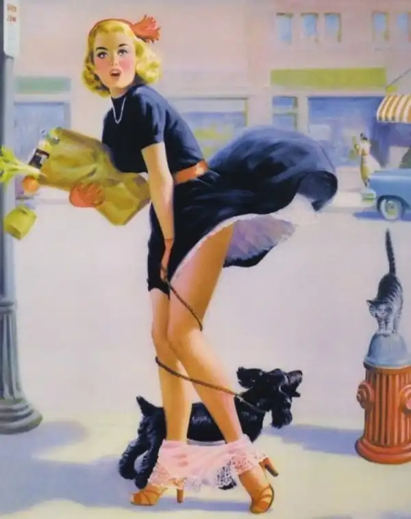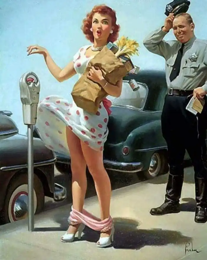 Картины с девушками в стиле пин-ап, на которых изображена одна повторяющаяся и пикантная деталь