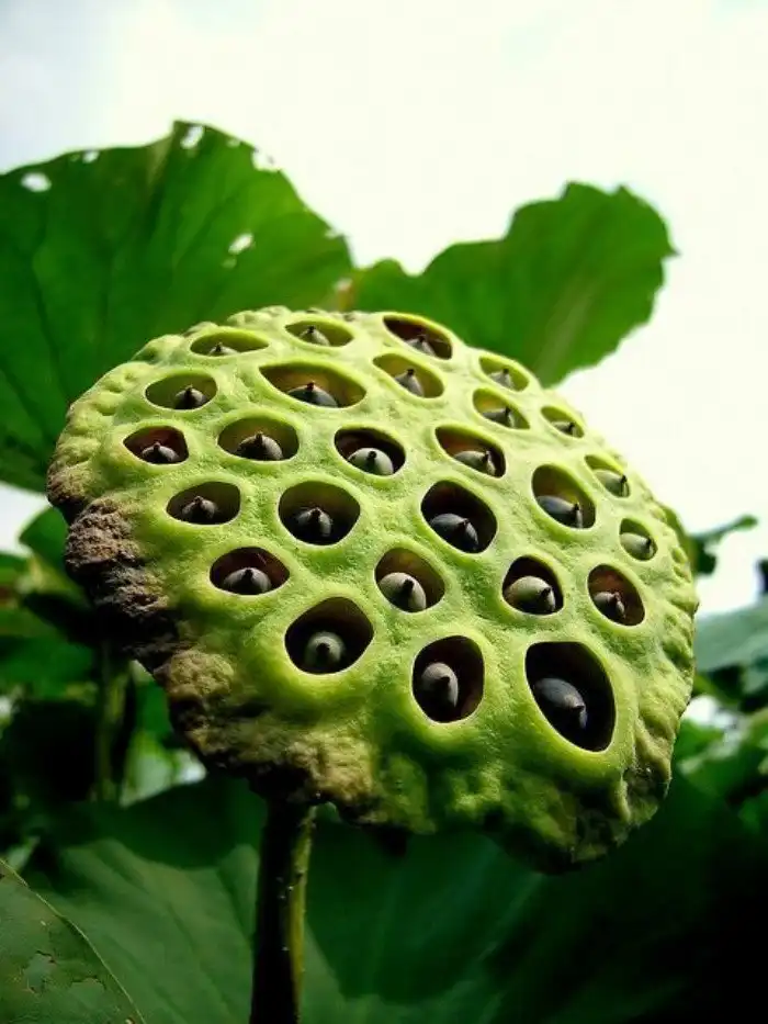 А это то, что всякие врунишки показывают людям с трипофобией в качестве болезни кожи человека. На самом деле, вдруг кто не знал, это всего лишь семенная коробочка лотоса
