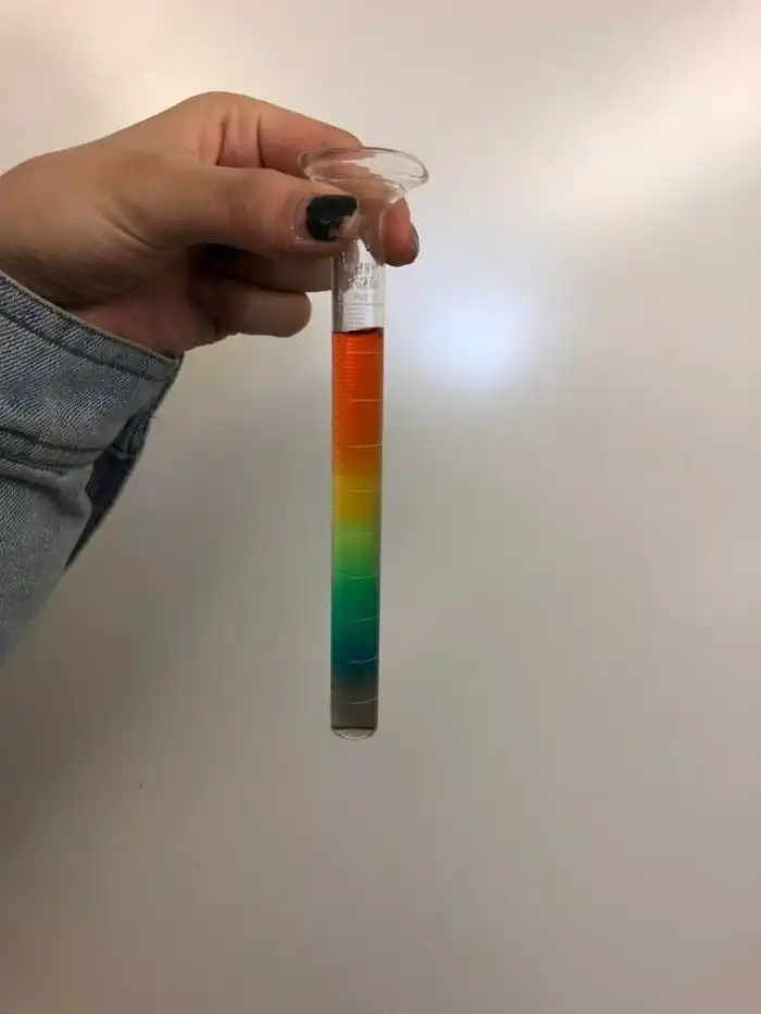 15. «Если налить в ёмкость окрашенную солёную воду с разным количеством соли, она останется разделённой по плотности»