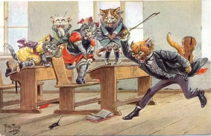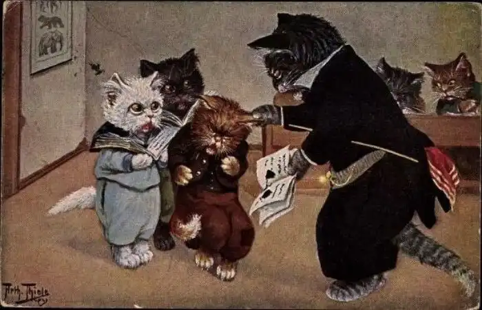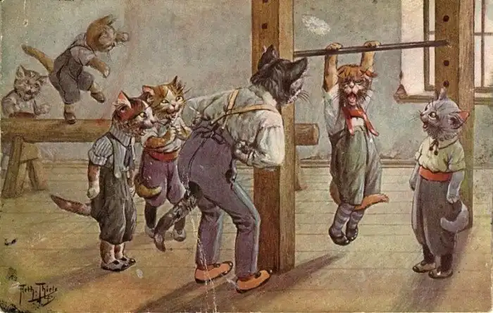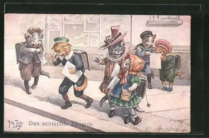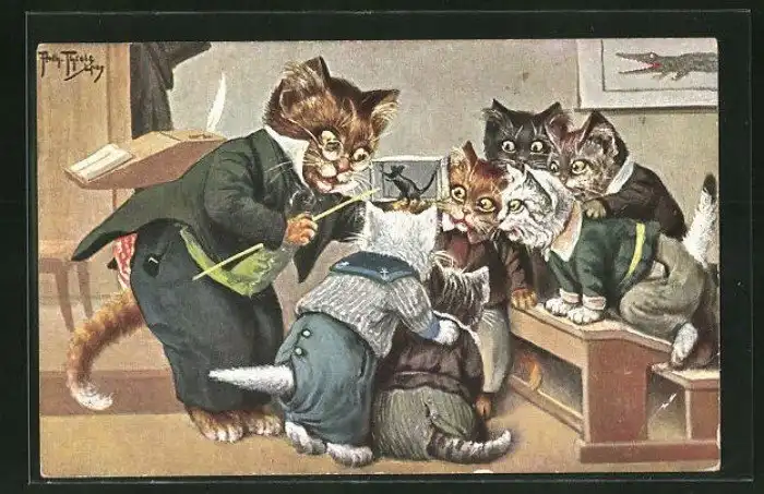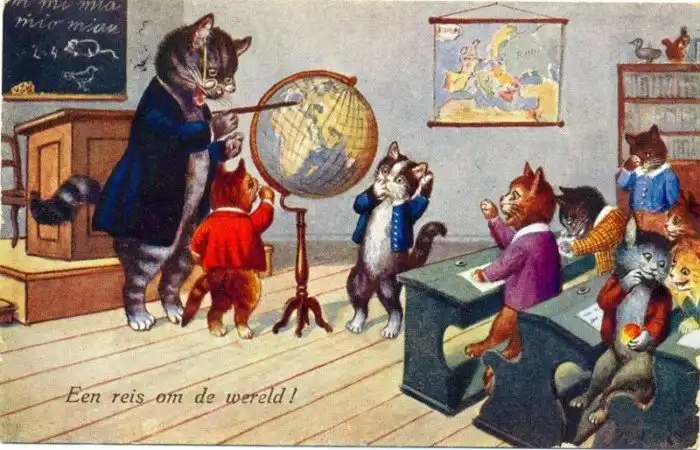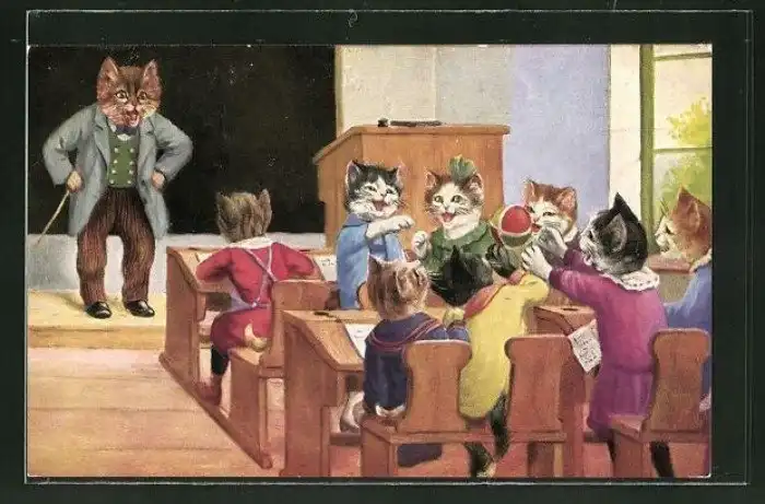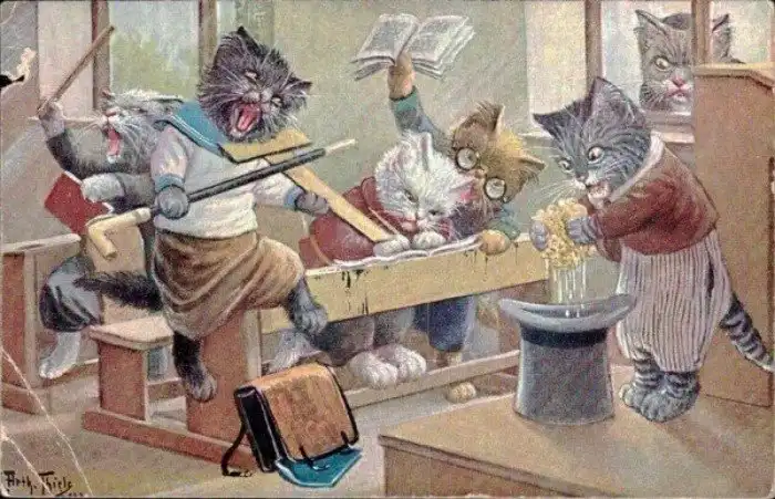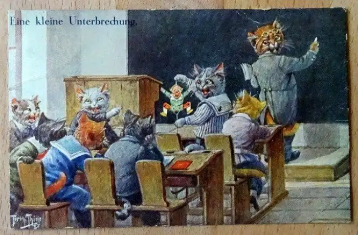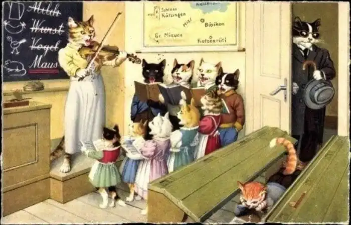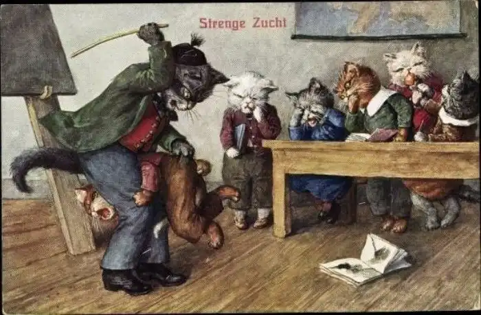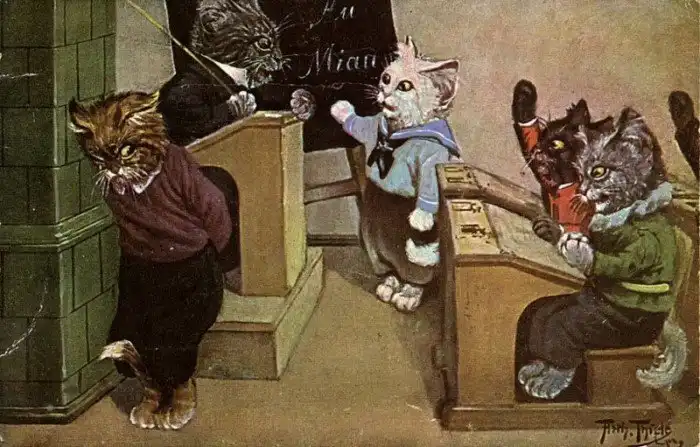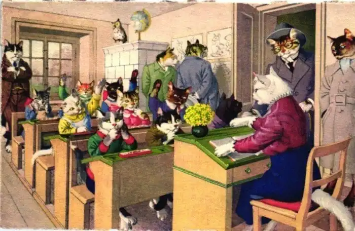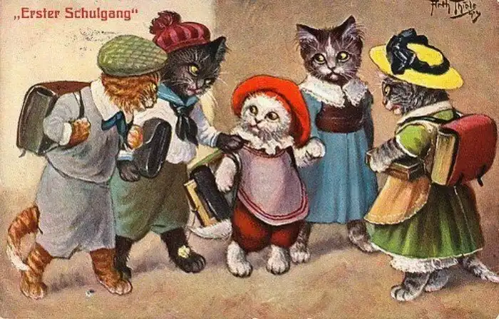 Забавные старинные немецкие открытки с котиками и школой.