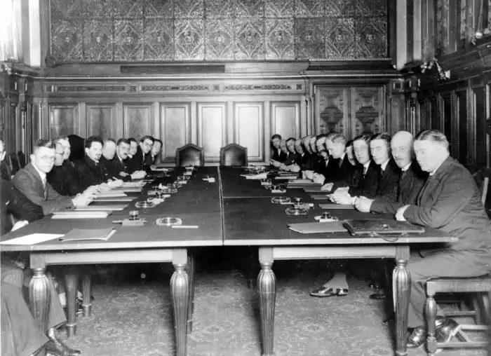 Подписание германо-советского торгового протокола в зале заседаний Народного комиссариата иностранных дел в Москве
