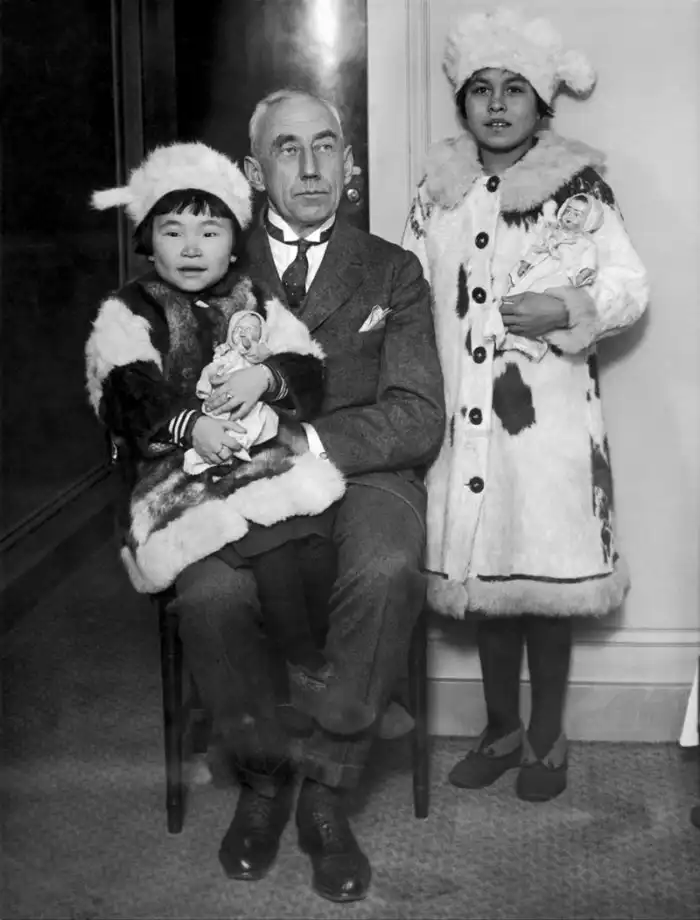 Руаль Амундсен и дети с Чукотки