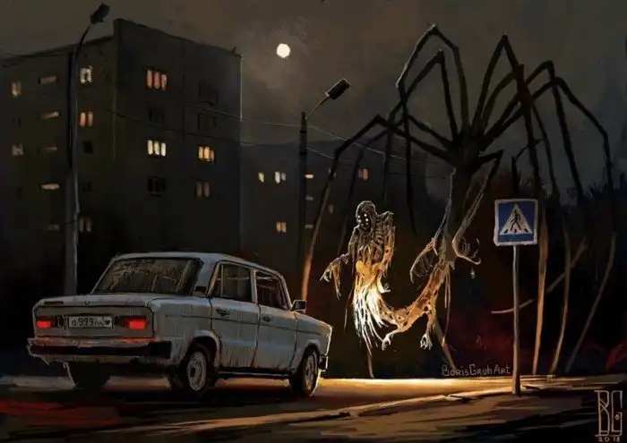 Теперь на работах Бориса всевозможные человеческие кошмары подстерегают людей возле домов, на дорогах, в лесу и даже на кухне. И хоть эти гиганты никого и не убивают, но выглядят чертовски пугающе — прямо как в самых сочных людских кошмарах.