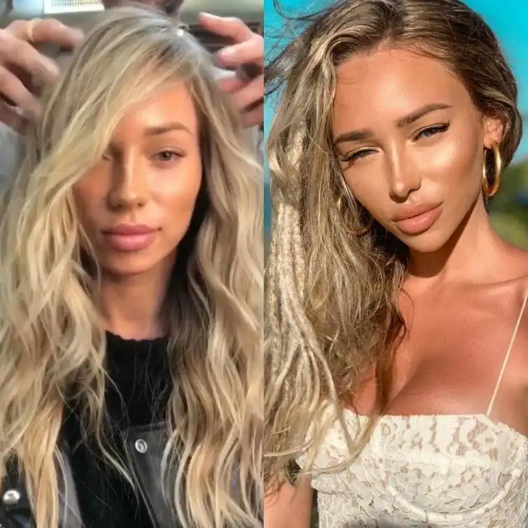 Скриншот из видео, опубликованного ее парикмахером против фотографии в её Инстаграме