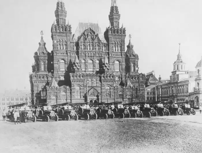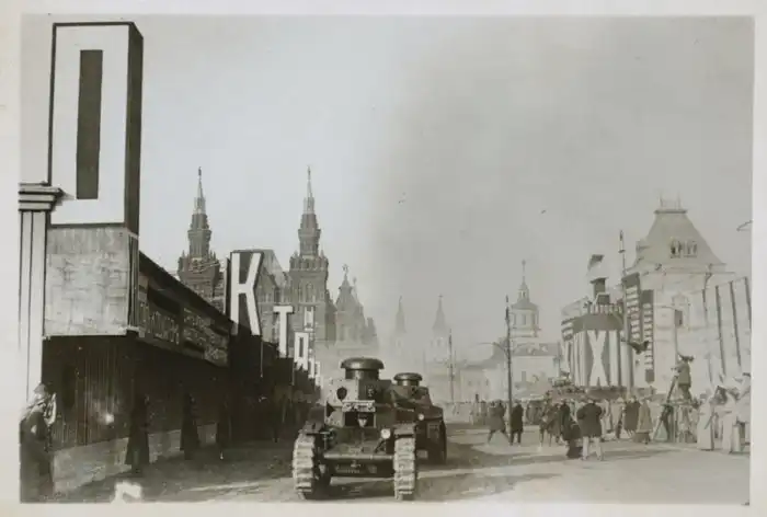 26. Танки проезжают по Красной площади во время празднования 12-й годовщины революции