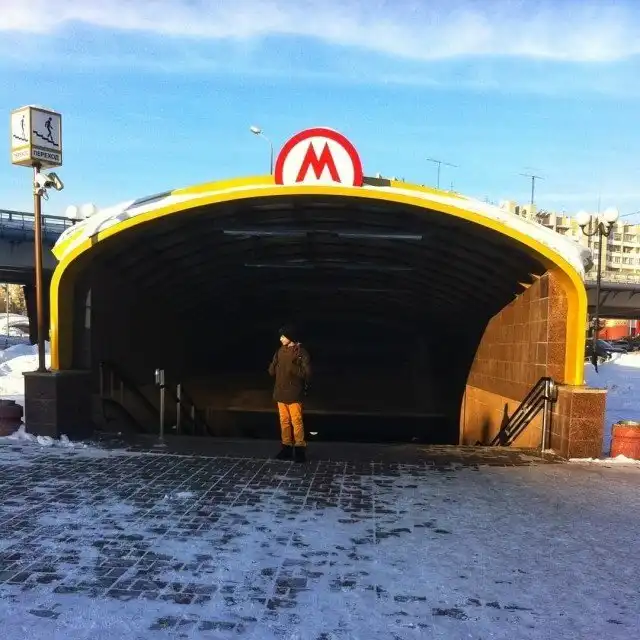 А вот так снаружи. Вход на станцию, а сейчас просто подземный переход
