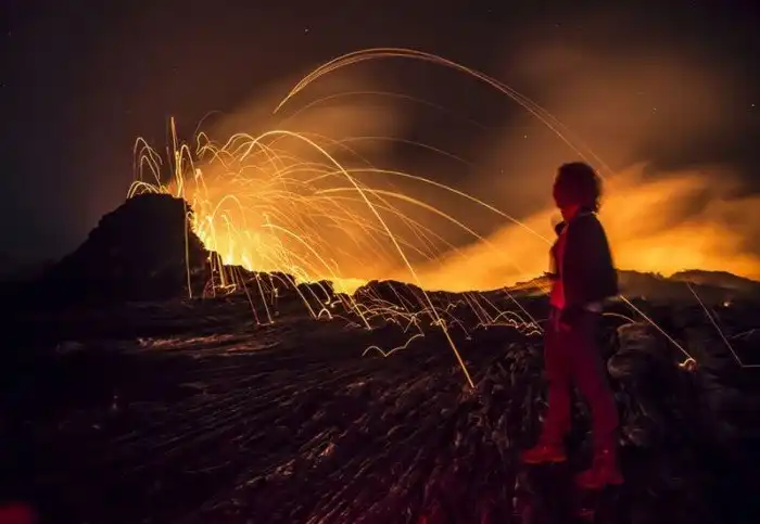 Фото с выдержкой около кратера активного вулкана Эрта-Але. Фото: Майк Коростелев (Mike Korostelev: Getty)