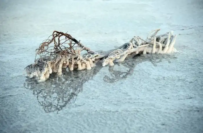 Покрытая солью ветка на поверхности озера. Фото: Карл Корт (Carl Court: Getty)