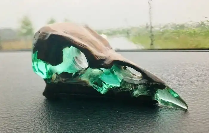 "Я редко прихожу в восторг от собственных работ, но эта, по-моему, удалась, - говорит Пэт. - Это череп ворона, выполненный из капа и искусственной смолы".