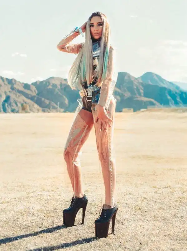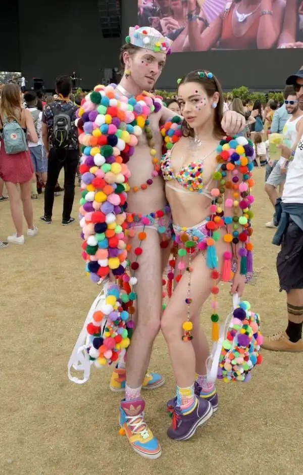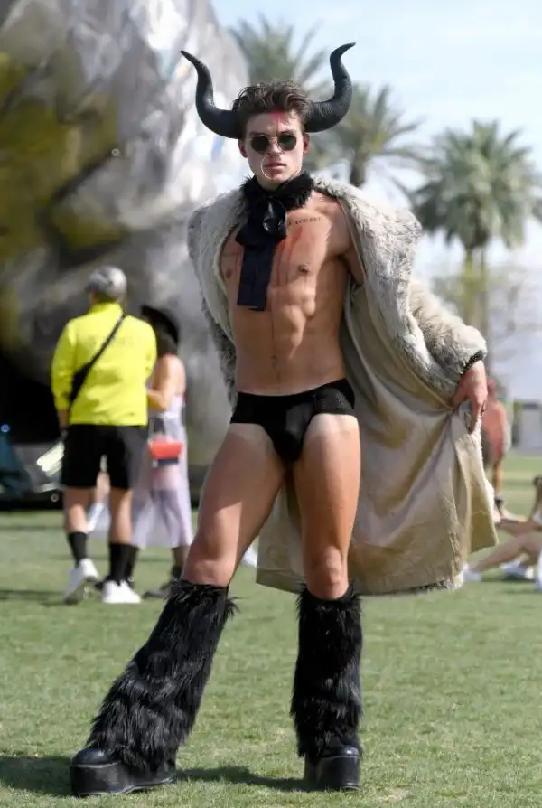 Грандиозный музыкальный фестиваль Коачелла, проходящий в апреле в Палм-Спрингс, известен не только сонмами звезд (певцы, модели и т.д.), но и сумасшедшими нарядами гостей. Ежегодно в город в пустыне Сонора приезжает более полумиллиона человек, чтобы как следует оторваться и показать свои яркие образы.