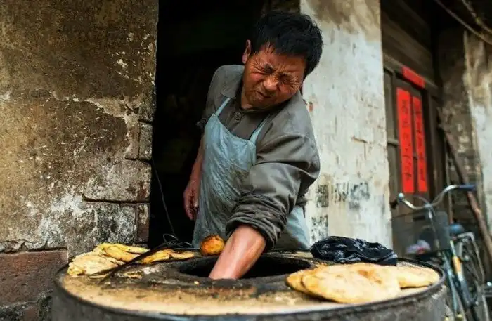 Уличный булочник в провинции Цзяньсу. Автор - Чжу Цзинги