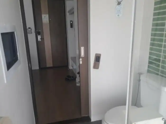 Рычаг для смыва унитаза находится близко к полу. Очень удобно - можно не касаться руками, а нажать на рычаг ногой.