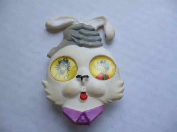 Значок - и тоже зрелище не для слабонервных. В глазах несчастного зайца, видимо, сохранились последние секунды жизни. А за уши его держит синяя рука.
