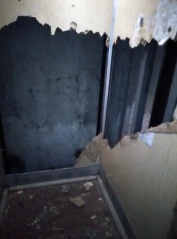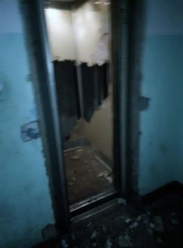 Наверное у застрявшего товарища была клаустрофобия - к приезду аварийной службы он уже разнес половину кабины лифта.