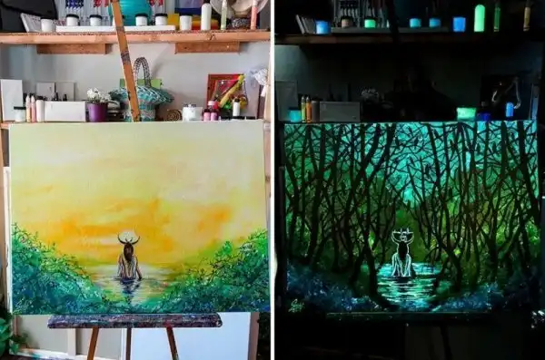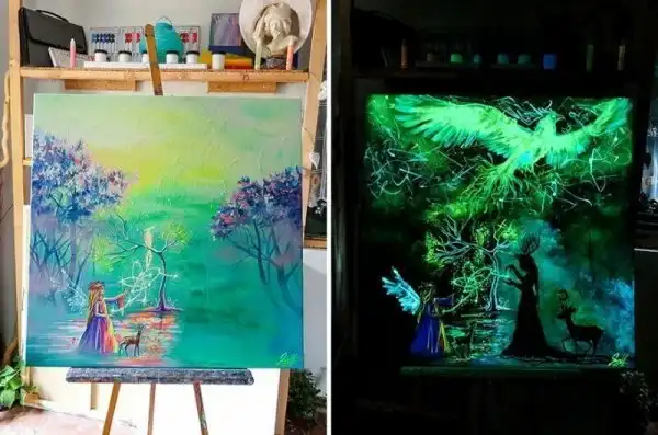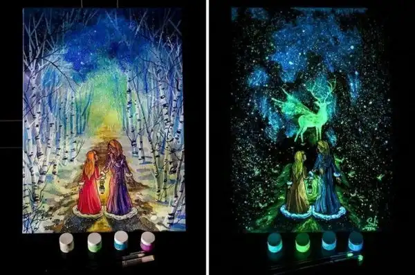 Представляющие собой разноцветные рисунки днём, ночью они начинают светиться, раскрывая новый смысл изображённого. Каждое светящееся в темноте изображение — это открытая дверь в другой мир, и для художницы, по её словам, это настоящая магия.