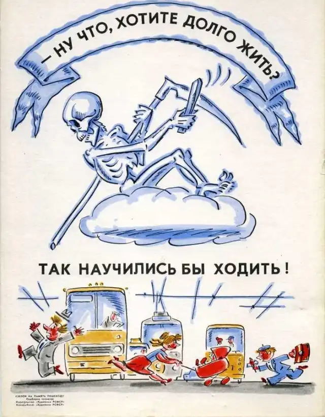 Столько лет прошло, а ситуация не меняется. Перед вами советские плакаты, которые предупреждают людей о беде, которая может произойти, если несерьезно относиться к ПДД. Сборник называется: "Узелок на память пешеходу" и, пожалуй, актуален он будет всегда.