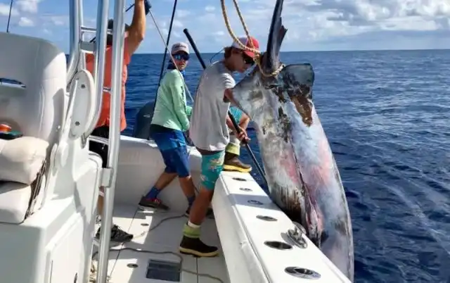 Барбекю из огромной меч-рыбы с весом в 343 килограмма