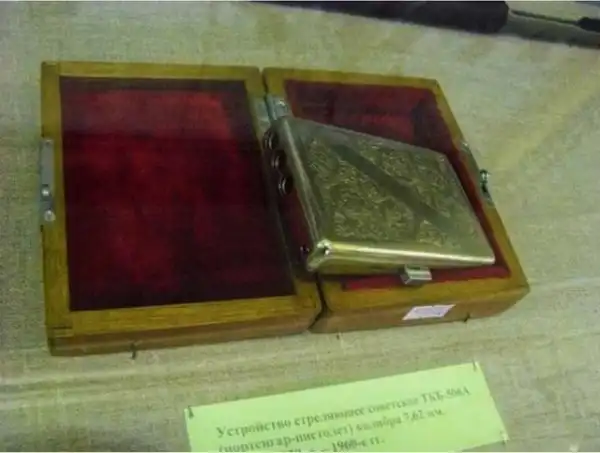 Это устройство получило название ТКБ-506, создано оно было конструктором Тульского ЦКБ-14 Игорем Яковлевичем Стечкиным, и по сути являлось портсигаром с трехзарядным стреляющим устройством. И хотя внешне он выглядел, как обычный портсигар, его механизм был смертельным.