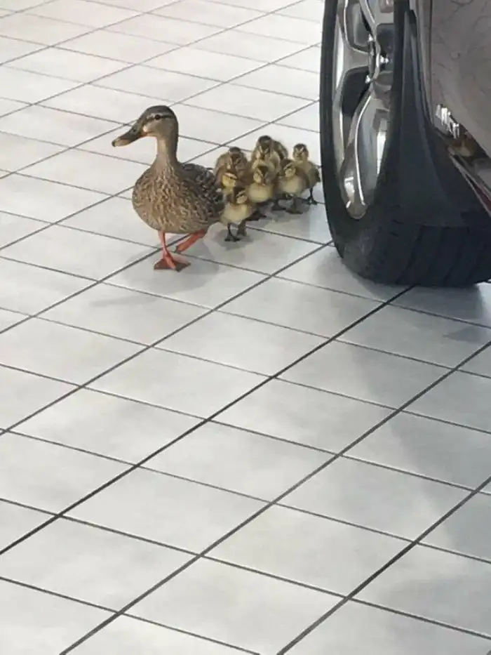 16. «Утки решили прогуляться по автосалону Kia»