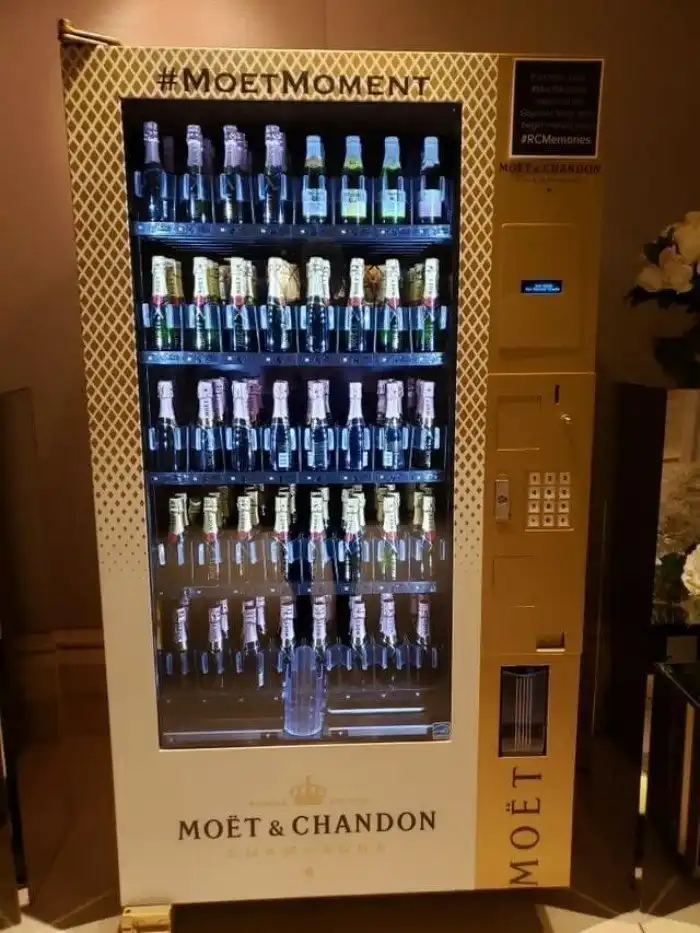 Отель, где в холле установлен торговый аппарат с мини-бутылками шампанского