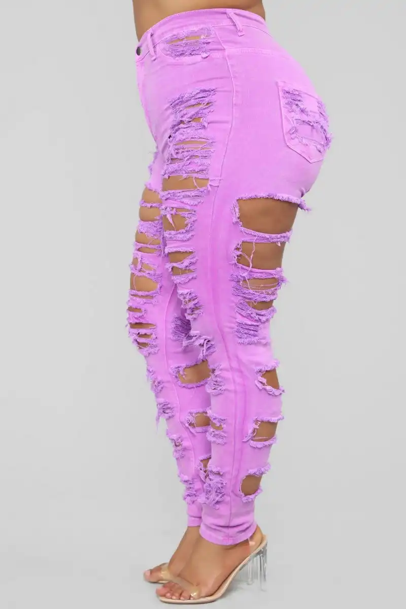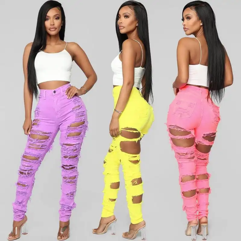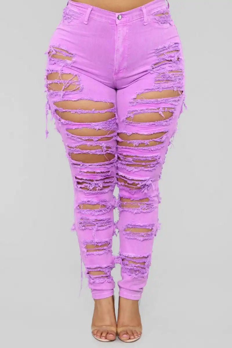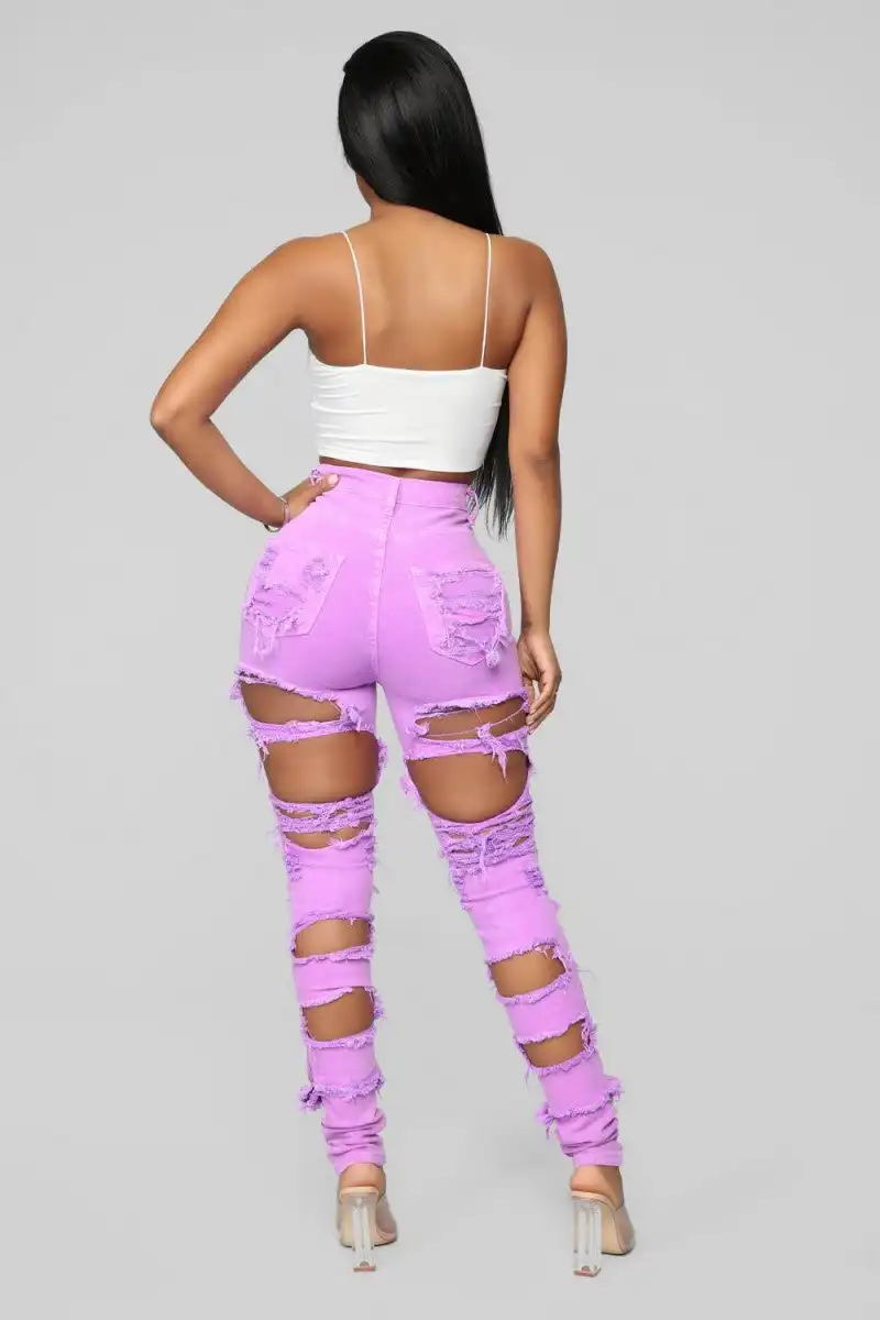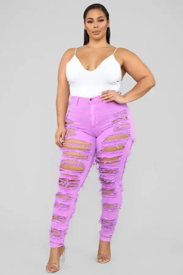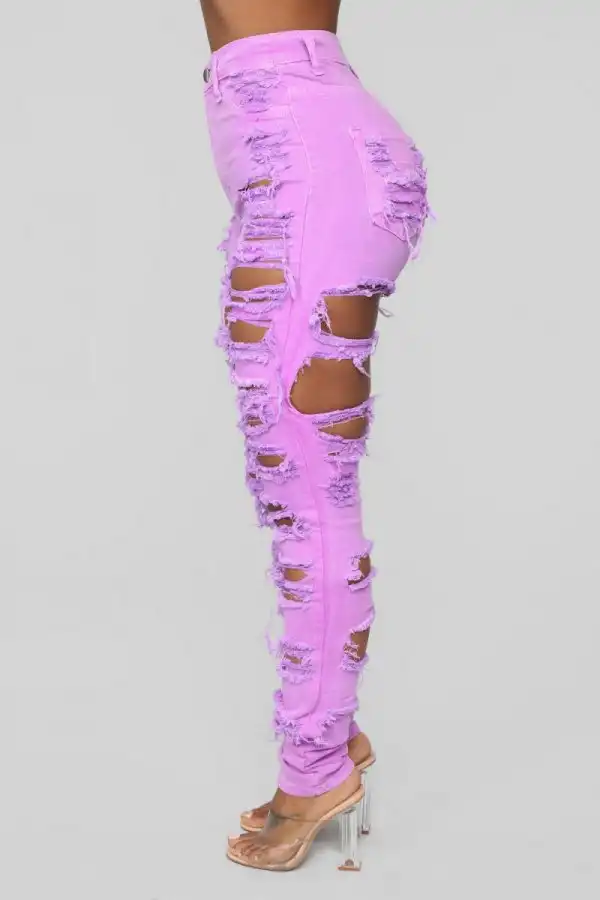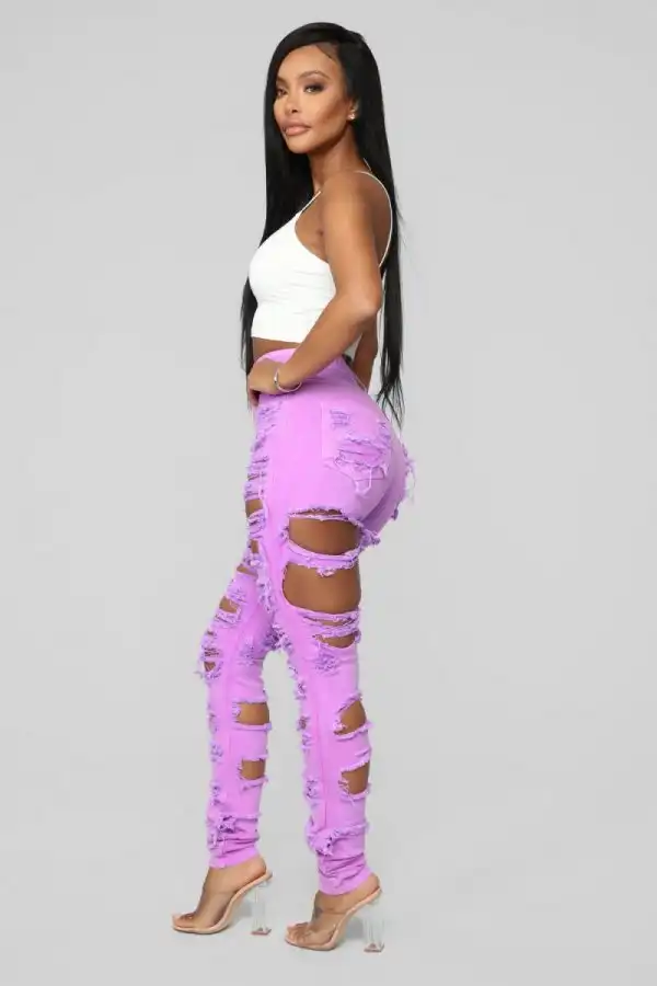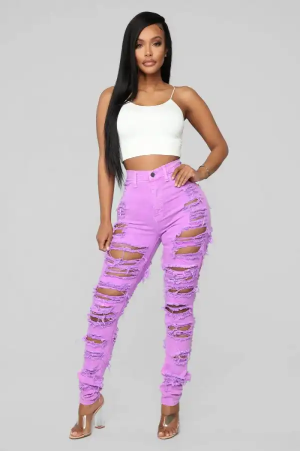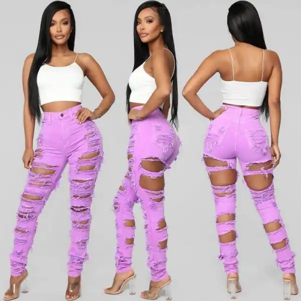 Сегодня джинсами с рваными коленями уже никого не удивишь. FASHION Nova продает яркие джинсы, которые буквально покрыты дырами. Штанишки есть разных размеров, розового, фиолетового и желтого цветов, стоят они $39.99. Покупатели шутят, что нога попадет в каждую из дыр, пока их наденешь.