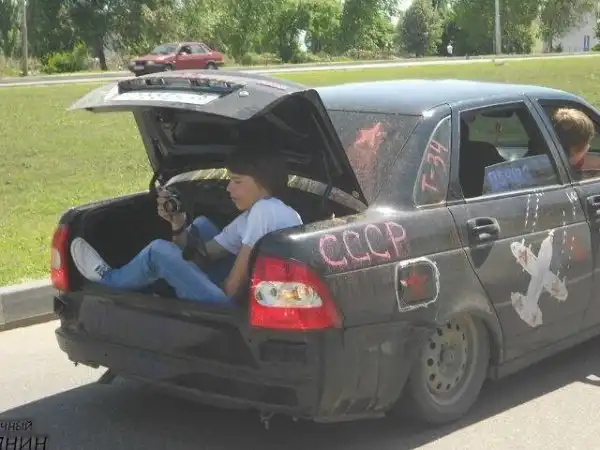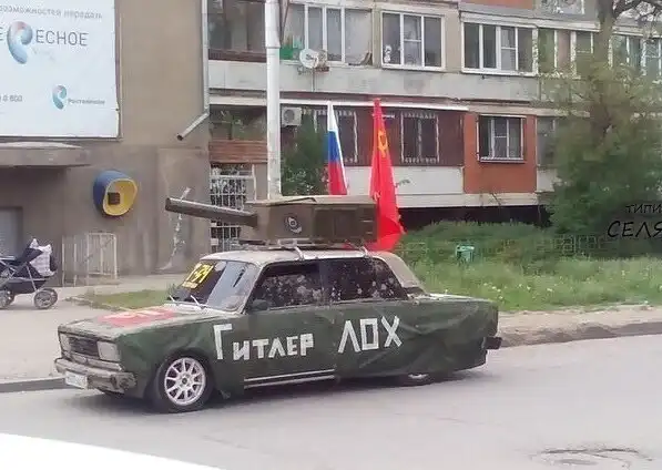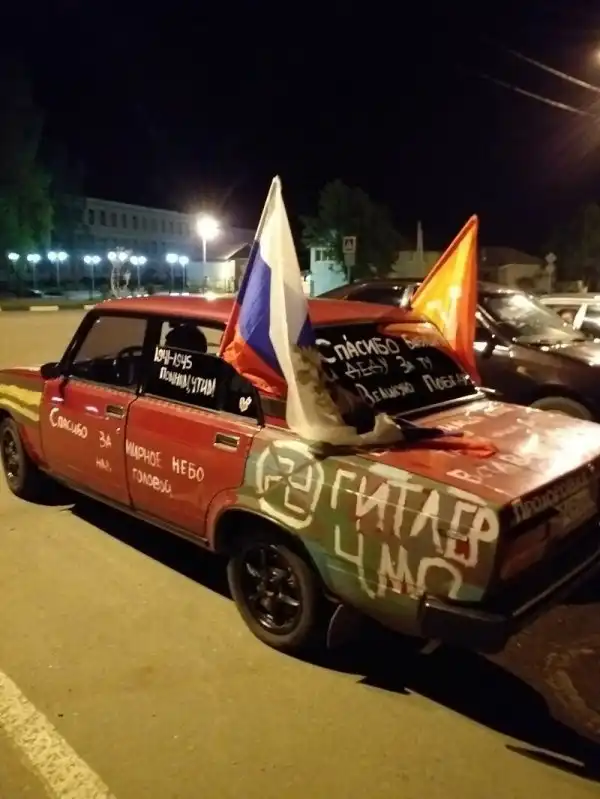 Обычные граждане тоже ушли не далеко, приделывая георгиевскую ленту куда угодно