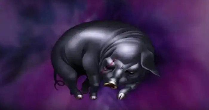 Монстр выглядит как черный поросенок или взрослая черная свинья с одним ухом, глазами красноватого цвета. Он никогда не отбрасывает тени, появляется только в крупных населенных пунктах ночью. Животное бегает под ногами людей, забирая их души, после чего люди становятся зомби. Чтобы спасти душу, надо прыгать на одной ноге.