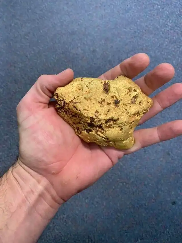 Историю о везучем золотоискателе поведал Мэтт Кук - владелец небольшого магазинчика товаров для золотоискателей на окраине города Калгурли, в котором добывают до 3 четвертей золота Австралии. Мэтт рассказал, как в один из погожих деньков в его лавку заглянул знакомый мужик, улыбающийся во все 32 зуба. Он пришел и показал здоровенный камень весом почти в полтора килограмма. Мэтт Кук знал, что этот парень знает толк в поисках сокровищ, но, чтобы ему так повезло, он не ожидал.