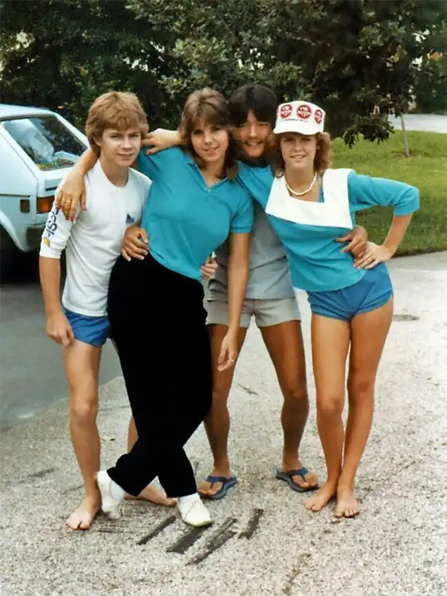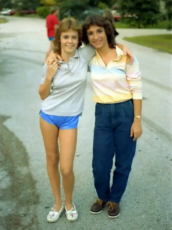 Эти суперпопулярные спортивные шорты в стиле унисекс появились в 80-х годах. Выпускала их американская компания Dolfin - отсюда и обиходное название "дельфины". Они, как правило, очень короткие, изготовлены из нейлона или другой спортивной ткани, имеют окантовку, боковые разрезы, закругленные углы и широкий пояс на резинке. Вот старые снимки, запечатлевшие девочек-подростков 80-х в шортах Dolphin. А у вас или ваших подружек были такие?