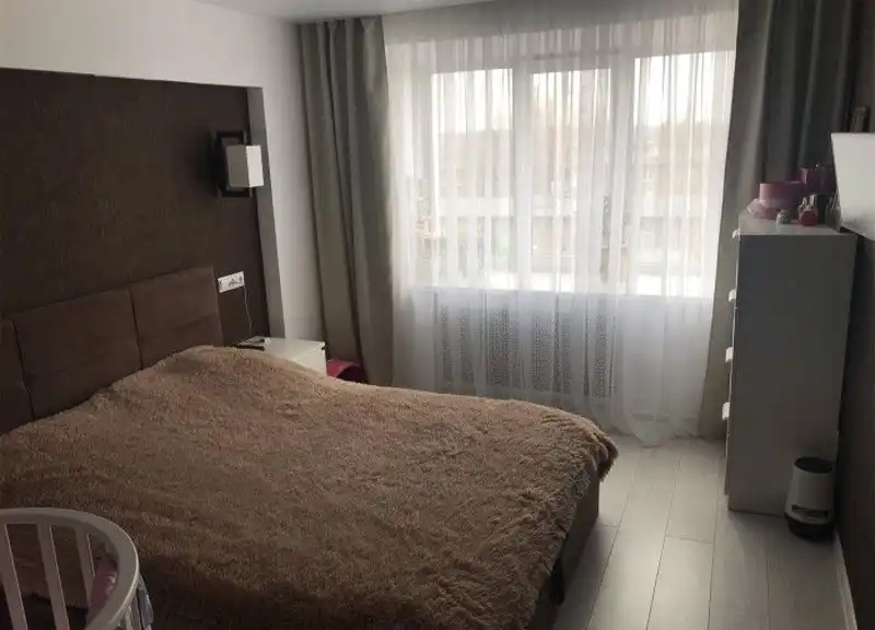 Поскольку спальня должна быть максимально уединенной, то в этом месте перепланировку владелец не затевал, при этом работу, конечно же, проделал грандиозную. Поменял старые рассохшиеся рамы на стеклопакеты, заменил радиатор и зашил оригинальными панелями, ну и стены выровнял с помощью гипсокартона.
