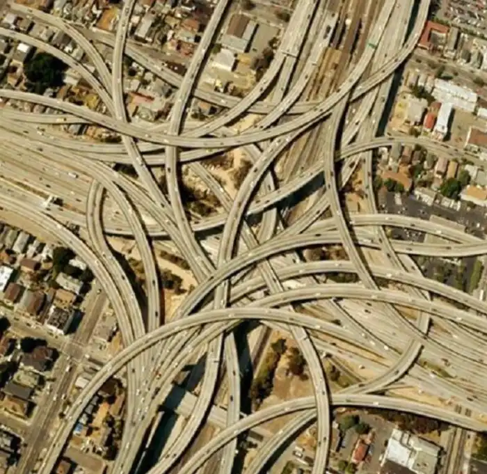 В некоторых ситуациях дорожную развязку просто невозможно построить иначе. Отсюда такие лихо закрученные инфраструктурные извращения. Но как вообще можно спроектировать подобные чудеса инженерной мысли? Что сказать? Феерично!