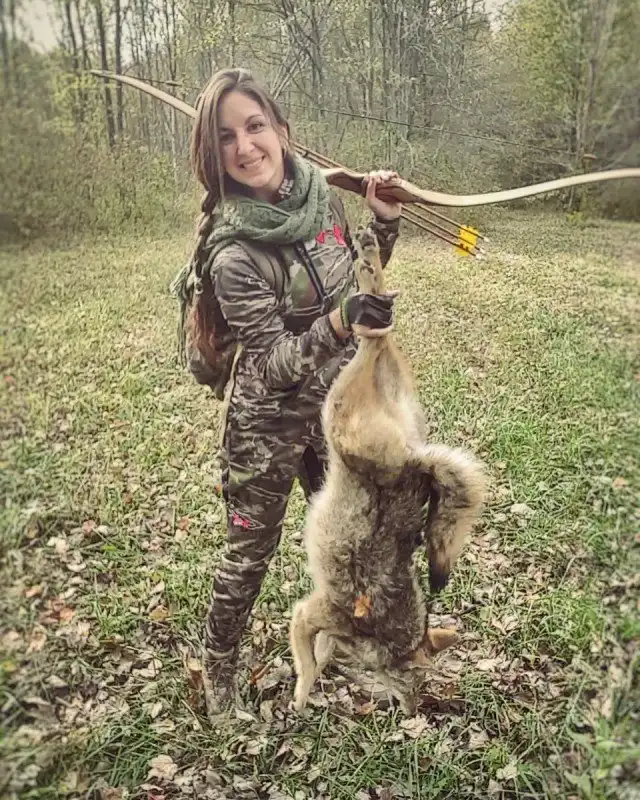 30-летней Ребекке Стивенс из Огайо было всего семь лет, когда она впервые пошла на охоту с отцом и влюбилась в это занятие. Теперь Ребекка, которая охотится с луком и стрелами, рассказала, что берет маленькую дочь с собой во время экспедиций, и даже купила ей "милый" наряд. Женщина охотится на индеек, кроликов и ее самым большим трофеем был белохвостый олень. Она старается использовать все части убитых зверей. Ребекка надеется, что ее дочь также будет любить охоту и рыбалку как и она.
