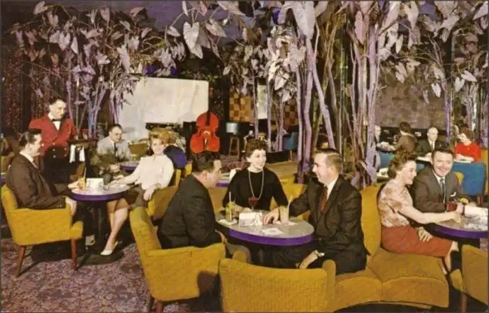 В ресторанах и барах всегда витает атмосфера отдыха и веселья, тем они и хороши. Но атмосфера заведений 50-х и 60-х годов отличается своей непринужденностью, и неповторимым ретро-стилем. Как отдыхали американцы в 50-х - 60-х? Заглянем в несколько известных баров, лаунджей отелей и ресторанов США того времени.