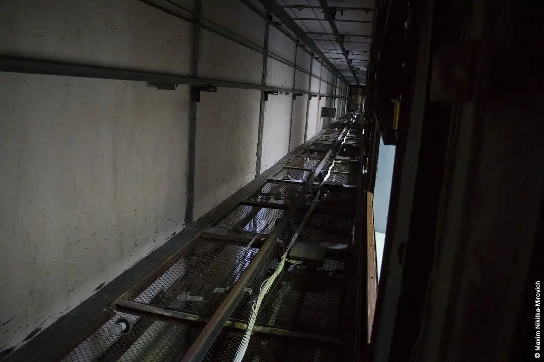Металлоконструкции лифтовой шахты пока целые — думаю, это связано только со сложностью их демонтажа без специальных средств и без навыков городского альпинизма.