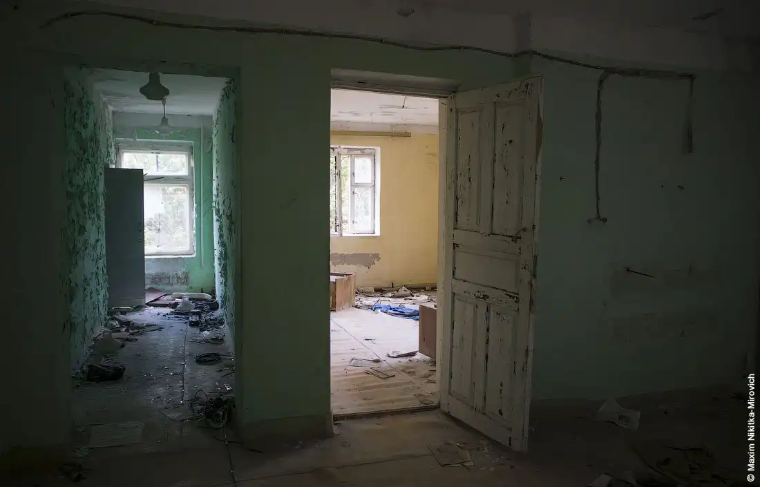 Коридор одной из припятских "трешек". Все обшарено и вынесено еще в восьмидесятые-девяностые годы — это сделали либо солдаты-дезинфекторы, либо мародеры. Либо и те, и другие.