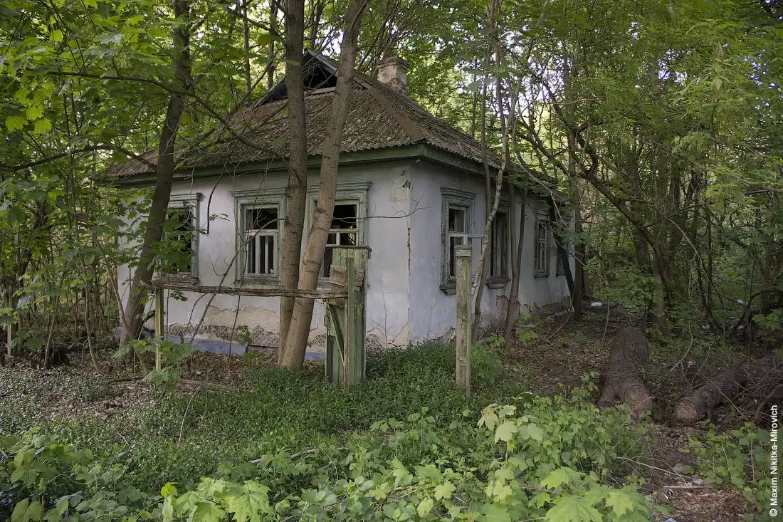 В самом городе Чернобыль в нежилой части города сохранились вот такие домики.
