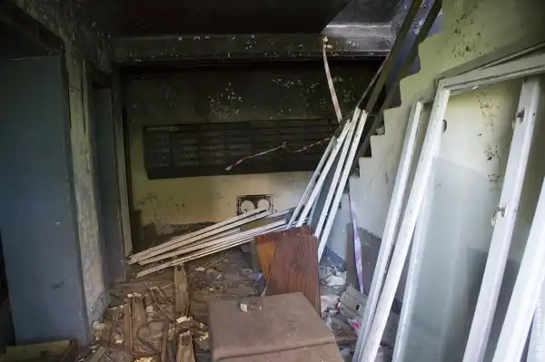 Внутри некоторых подъездов можно увидеть закопченный потолок — это уже следы деятельности мародеров "второй волны" — они собирают провода и сжигают изоляцию, чтобы получить чистую медь и алюминий — работа, весьма загадочная для меня непропорциональностью вложенных сил и полученных в итоге средств.