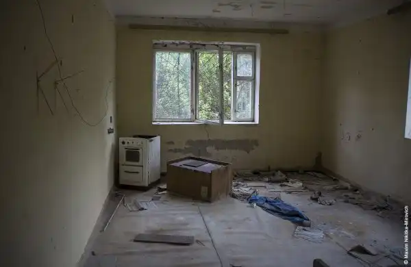 Все квартиры в Припяти выглядят примерно вот так. На одном из форумов когда-то встречал вопрос — реально ли сейчас в каком-нибудь дальнем уголке Припяти найти квартиру, "про которую все забыли", и где все осталось "как в 1986". С абсолютной уверенностью могу сказать, что последняя такая квартира перестала существовать еще в конце восьмидесятых-начале девяностых. Все квартиры в Припяти сейчас вскрыты и разбиты, мародеры побывали в каждой десятки раз. "Стандартная" припятская квартира выглядит так — пустые стенные шкафы в прихожей, диван и остатки разломанной "стенки" в гостиной, пустая спальня, разбитая плита на хухне, детские сандалии и старые фотографии на полу детской. Всё.