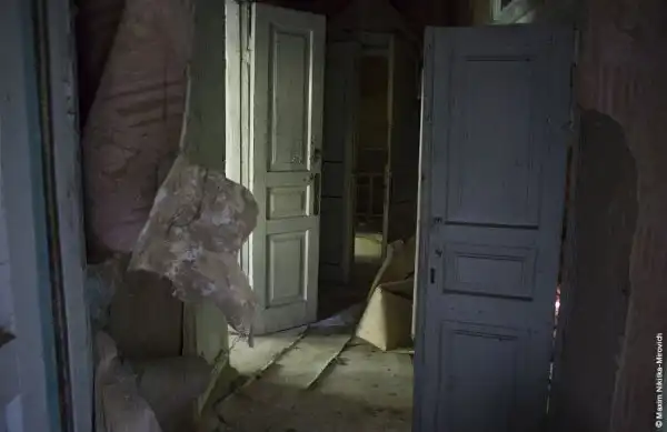 Административные здания кинотеатра. Все двери давно вскрыты, комнаты обшарены.