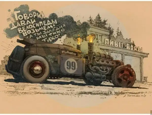 Андрей Ткаченко как раз из таких — художник легко комбинирует народные сказки, дизельпанк и современность, и рисунки у него получаются такие, что разглядывать их — одно удовольствие!