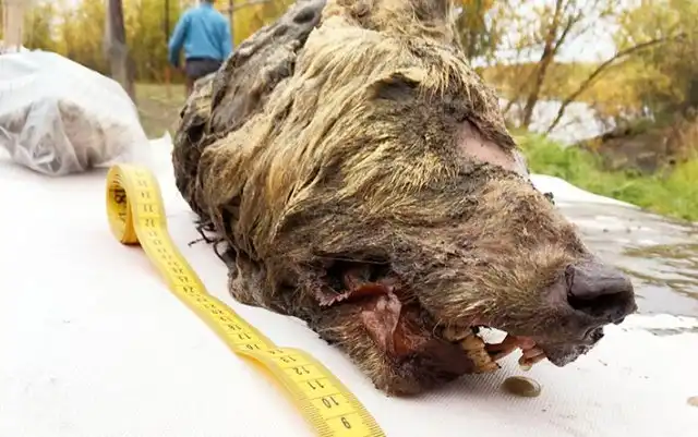 Из вечной мерзлоты Абыйского района, Якутия (РФ) нашли голову доисторического волка, которая так хорошо сохранилась, будто волк умер месяц назад. Ученые выяснили, что волк жил 40 тысяч лет назад, а голова была отрублена.