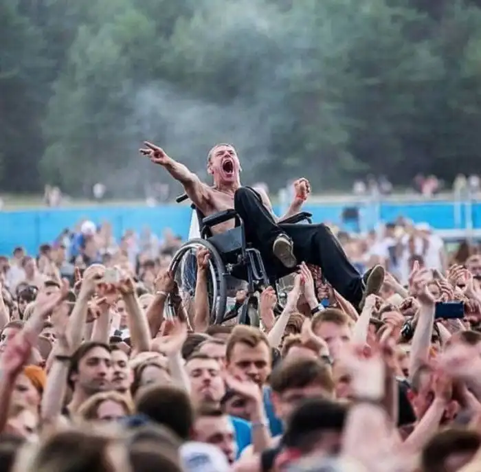 7. Фанаты увидели в толпе инвалида и подняли его, чтобы он мог видеть концерт. Как много человеческого в этом кадре!