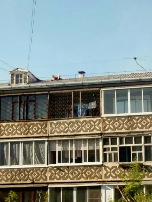 местный житель микрорайона Ангарска, которому остро не хватало солнечных лучей и витамина "D". Он решил воспользоваться чудным летним днем и позагорать на крыше, правда способ он выбрал очень рискованный, который не стоит повторять никому.