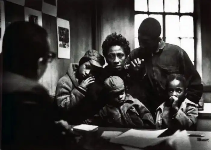 В Америке имя Горона Паркса стало символом победы человека над обстоятельствами. Паркс — первый темнокожий фотограф, снимавший для Life и Vouge, первый режиссер-афроамериканец в «белом» Голливуде.Паркс много и успешно работал над темой расовой дискриминации в Америке, снимая жизнь и войны молодежный банд Гарлема. На одном из своих снимков фотограф запечатлел Бесси Фонтенелли и ее четверых детей в отделе социального обеспечения. Женщина, озабоченная судьбой детей и придавленная нищетой, сталкивается с типичным «белым» клерком. Фотографу удалось уловить тот самый миг, когда лица героев горят красноречивее любых слов, а отстраненность от проблем социально незащищенных слоев прекрасно передана спиной «вершителя судеб» к камере.