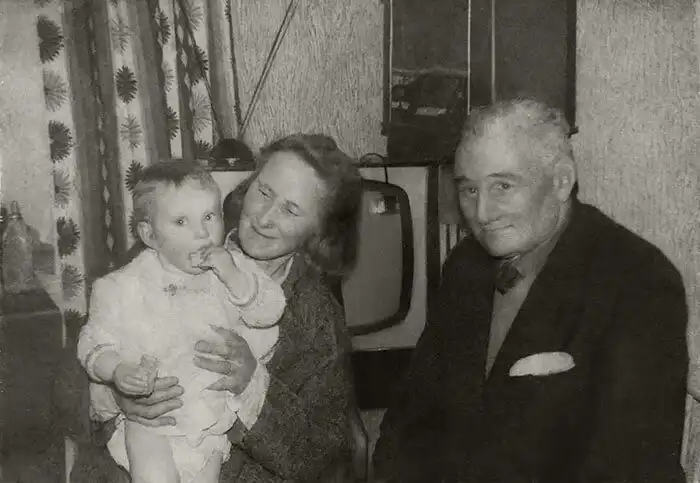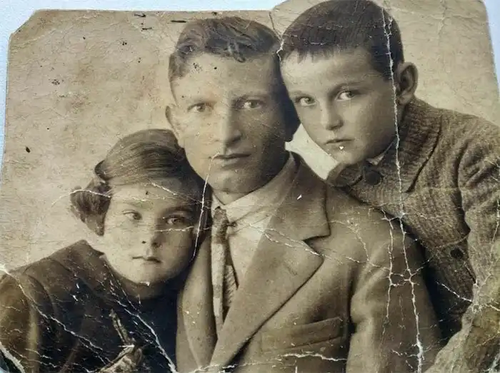 1. Попросили "починить" вот такой снимок. На нем изображены владелица снимка в детстве и ее бабушка с дедушкой. Это единственное их сохранившееся изображение