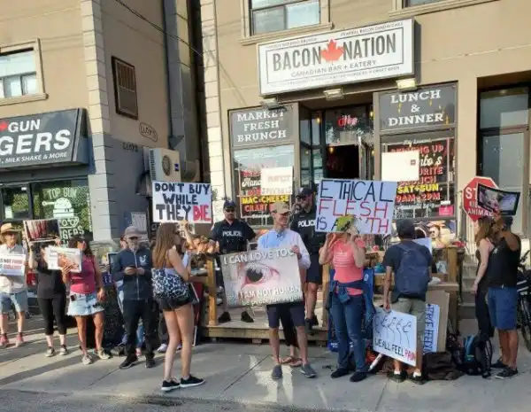Мясной ресторан в Канаде устроил гениальную акцию. Они раздают бесплатные блюда на вынос, когда у их здания собираются митингующие веганы. Троллинг 80lvl, который превратил митингующих в бесплатную рекламу.