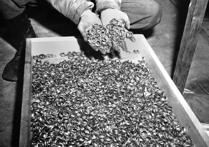 Советские солдаты рассматривают немецкие награды, которые так и не были вручены. 2 мая 1945 года