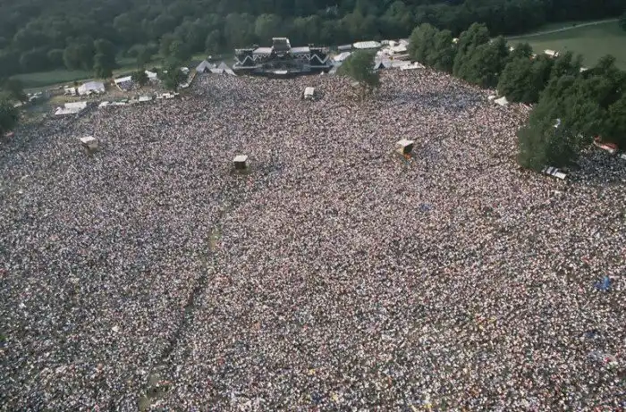 Толпа в Кнебворсе, Англия, ждет выступления Queen 9 августа 1986 года.