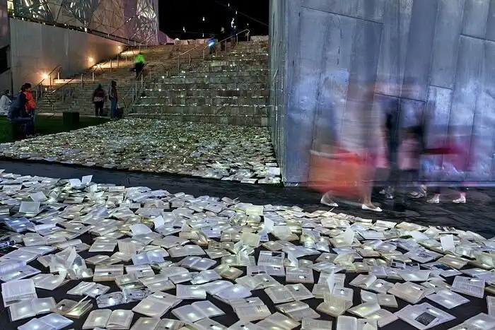 Инсталляция "Литература против трафика" в Мельбурне - более 10.000 книг